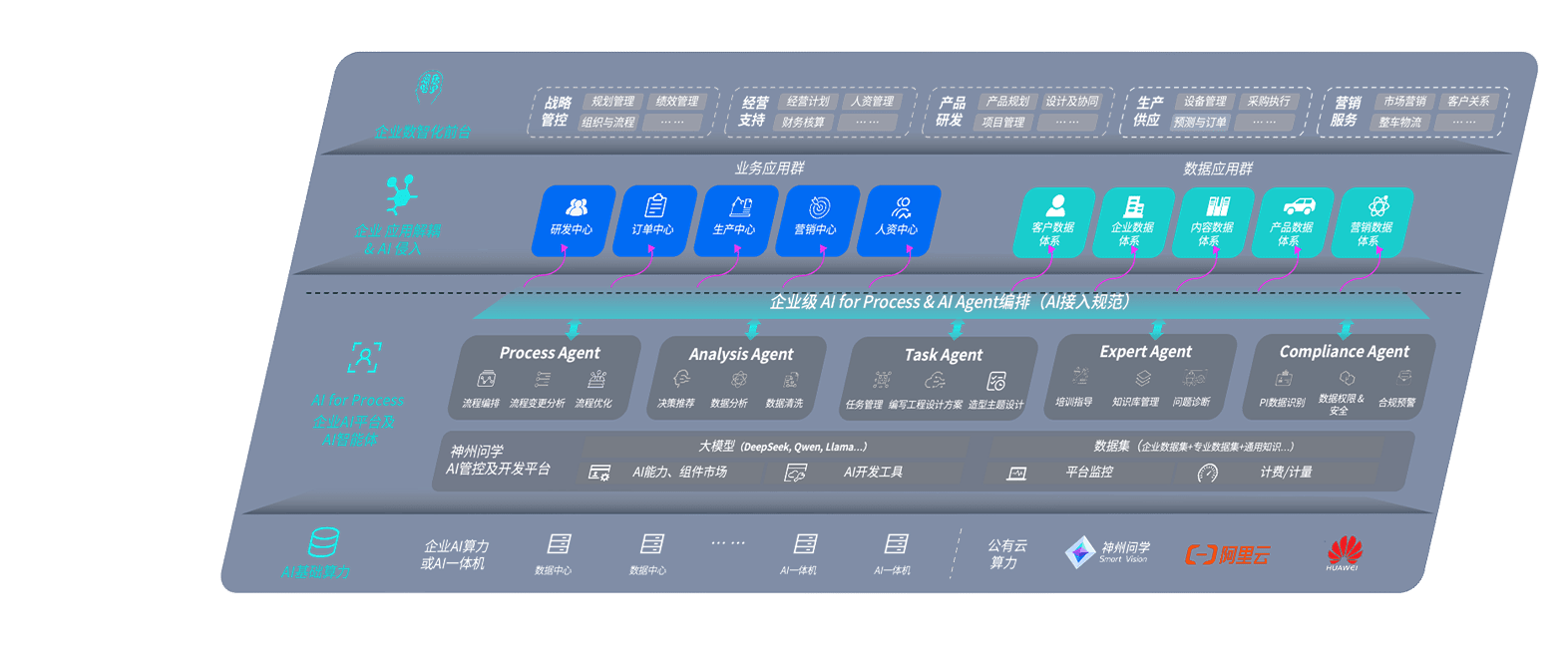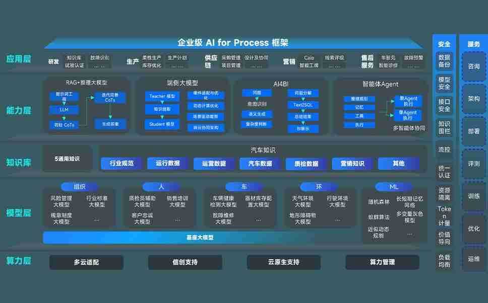 端到端的一站式AI工作空间深度融合了从企业战略规划到日常经营的全流程业务板块,,定向解决车企内部领域多、、、部门多、、、链条长、、、、场景碎片化等难题,,,支持车企快速构建以AI为核心的生产力写作体系,,实现任务执行与AI能力的无缝集成与交互